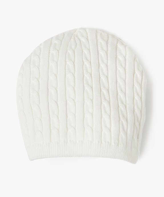 Bonnet de naissance en maille torsadée bébé ecru