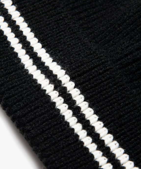 Chaleur et look intemporel pour ce bonnet garçon en grosse maille côtelée. Son revers avec rayures contrastantes dynamise le modèle classique. Un accessoire parfait pour affronter les journées froides avec style. Confortable et bien ajusté, ce bonnet accompagne toutes les tenues, qu'il soit porté avec une parka, une doudoune ou un caban.