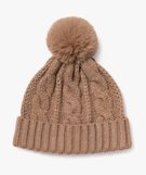 Bonnet en maille torsadée avec pompon femme marron