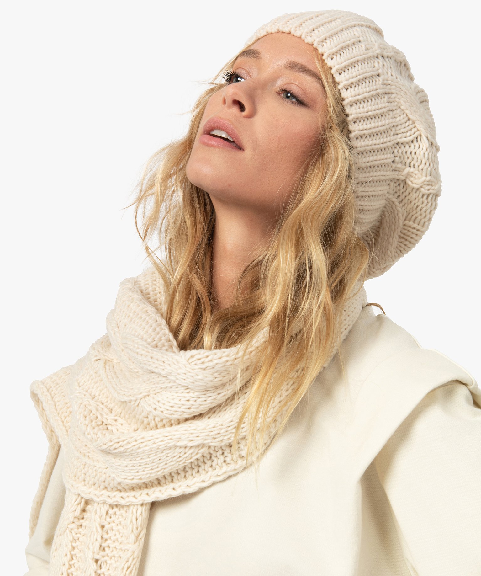 Bonnet femme en maille côtelée blanc chine