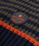 Ravissant bonnet bébé garçon avec large revers et patch LuluCastagnette en gomme sur l'avant. On craque pour ses rayures intemporelles et sa grosse maille douce et chaude. Un adorable bonnet en maille pour réchauffer la tête de votre petit garçon cet hiver. Accessoire non doublé. Revers cousus. Petite étiquette Lulu brodée sur le côté.