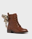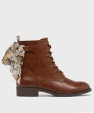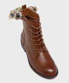 Boots à lacets et zip avec foulard à nouer femme [MISSING] marron