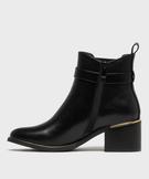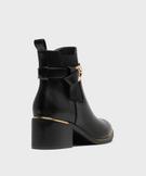 Sublimez vos looks d'automne-hiver avec ces boots à talon femme élégantes. Leur ligne sobre et intemporelle est magnifiée par des touches raffinées de métal doré, présentes tout autour de la semelle, au niveau du talon et sur la boucle de la bride à la cheville. Chic et modernité assurés ! Pensées aussi pour votre confort, ces boots à talon et bout amande sont dotées d’un large élastique discret sur le côté extérieur de la cheville, garantissant un maintien optimal et un enfilage facile. Les chaussures se ferment à l'aide d'un zip sur le côté intérieur du pied. Avec leur talon élégant et stable, ces boots sont idéales pour compléter toutes vos tenues, du look urbain au plus sophistiqué.