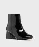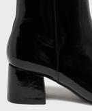 Ces boots femme vernies offrent un look sobre et élégant, tout en restant faciles à porter au quotidien. Leur talon large de 5,5 cm assure stabilité et confort, tout en apportant une belle hauteur. Le bout rond et la ligne épurée permettent une silhouette féminine et sophistiquée. Les surpiqûres délicates au centre de la chaussure et sur le côté de la cheville ajoutent un détail subtil et raffiné. Les bottines se ferment à l'aide d'un zip sur le côté intérieur. La doublure textile moelleuse garantit un confort optimal.