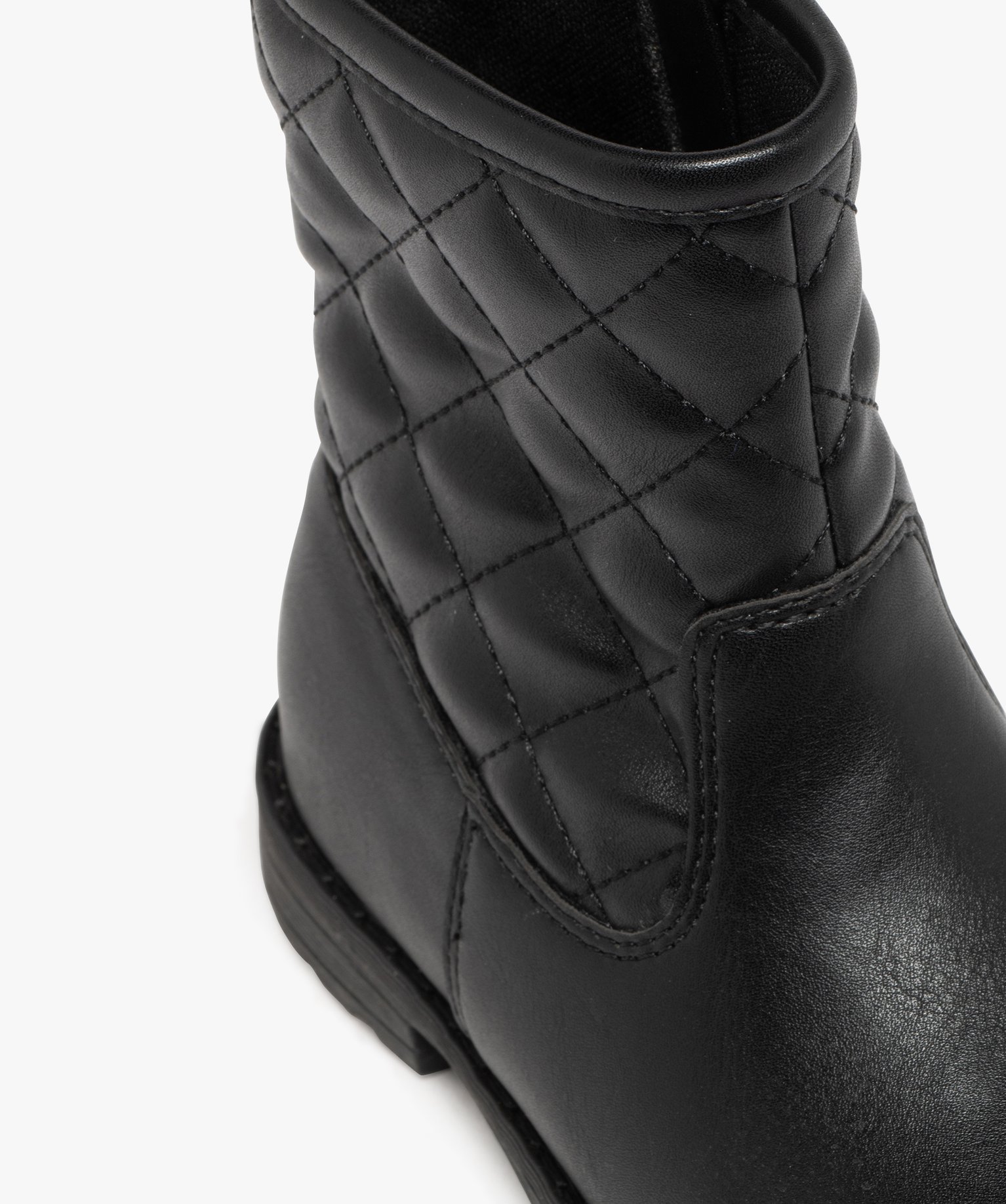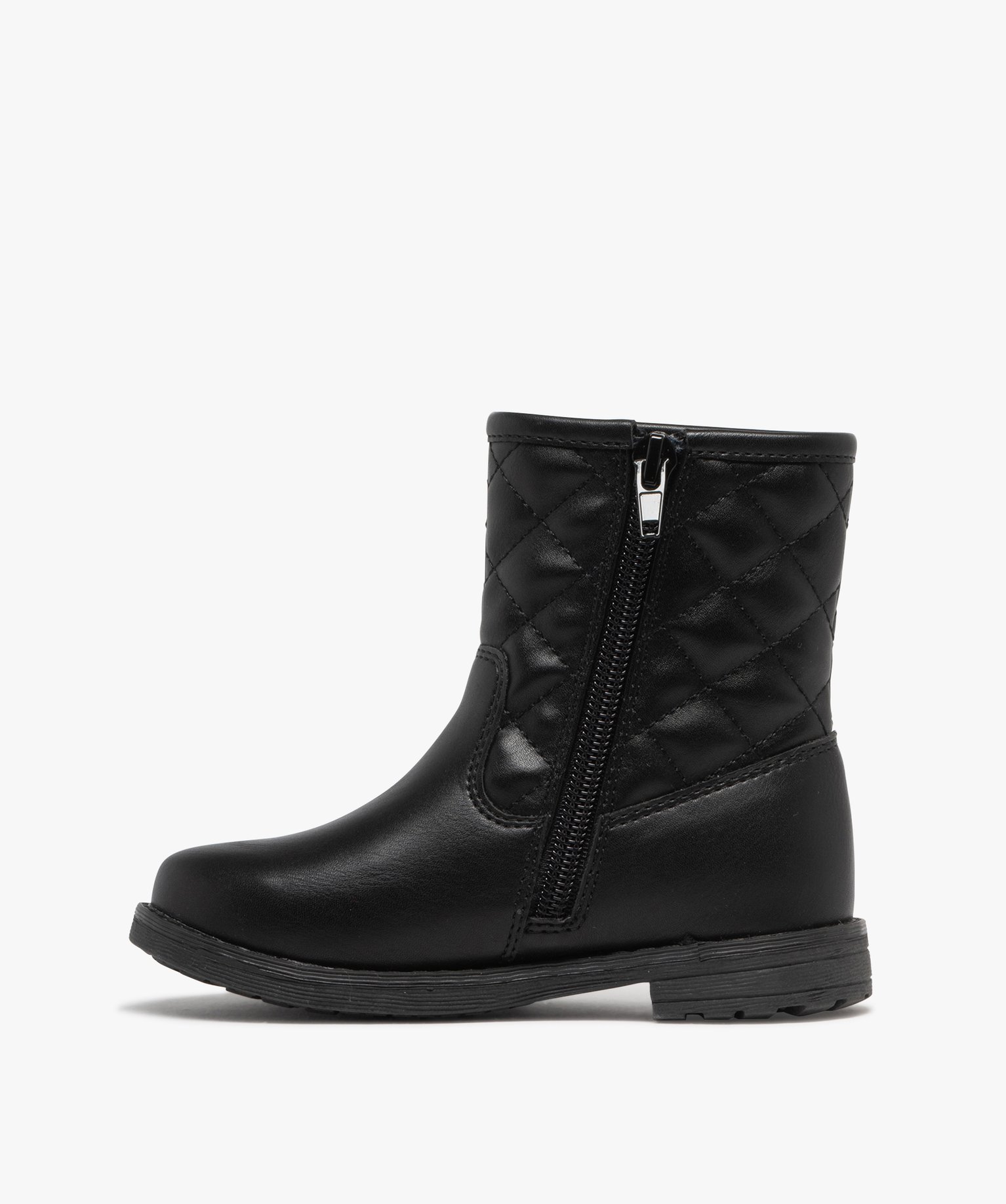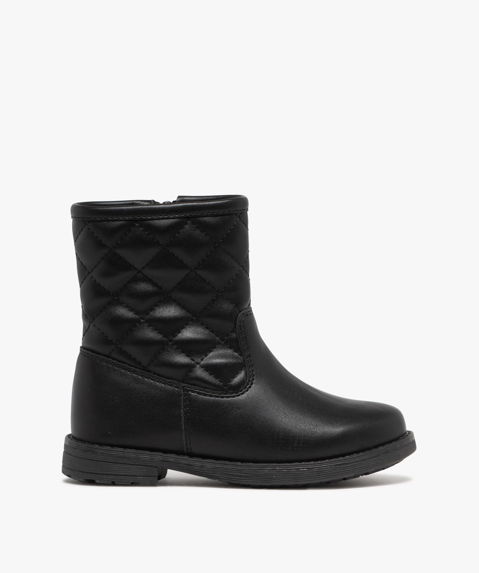 Ces jolis boots accompagneront avec style toutes les tenues des filles pendant la saison automne-hiver. Des bottines fille au design épuré, twistées par une tige matelassée avec doublure moelleuse en textile. Elles se ferment facilement à l’aide d’un zip intérieur et assurent une démarche confortable grâce à une semelle robuste et un large talon. Des boots à porter avec un jean ou avec une jupe et des collants fantaisie.