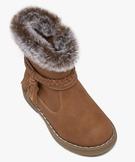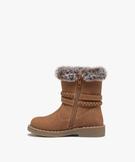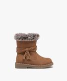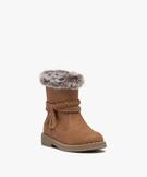 Boots bébé fille fourrées dessus uni à brides fantaisies marron
