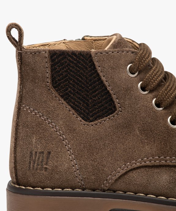 Boots bébé garçon à col fourré et dessus en cuir suédé avec semelle crantée - NA!