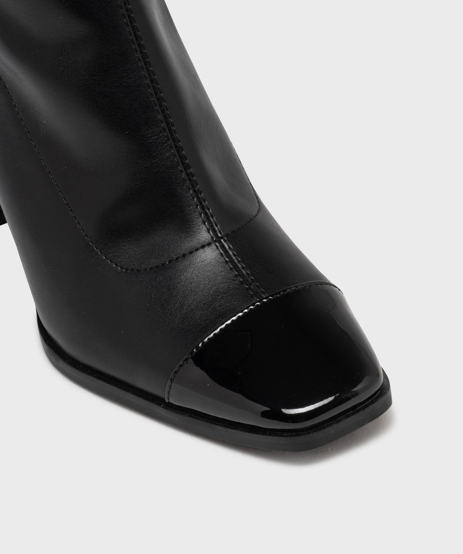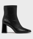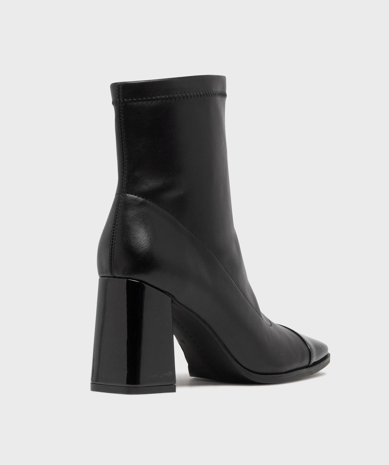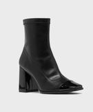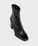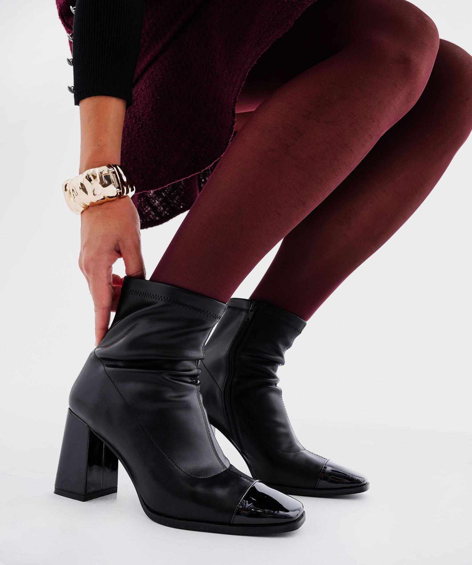 Gémo revisite la mode vintage avec ces sublimes boots femme ! Les bottines chaussettes sont montées sur un talon trapèze de 8 cm verni qui rappelle le bout carré, verni également. Le chaussant est renforcé, mais la tige montante est souple. Pour faciliter l'enfilage, les boots femme sont dotés d'un zip sur le côté intérieur du pied. Vous porterez ces chaussures montantes à talon aussi bien avec un pantalon qu'avec une jupe.