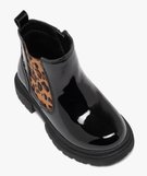 Boots Chelsea vernies à imprimé animal fille[MISSING] noir