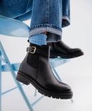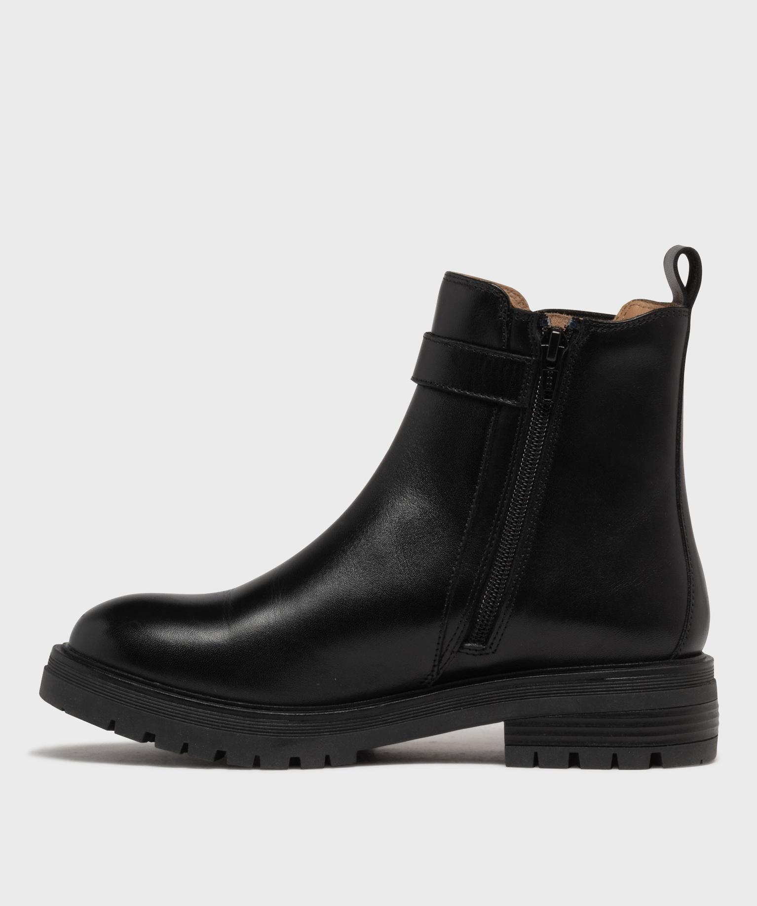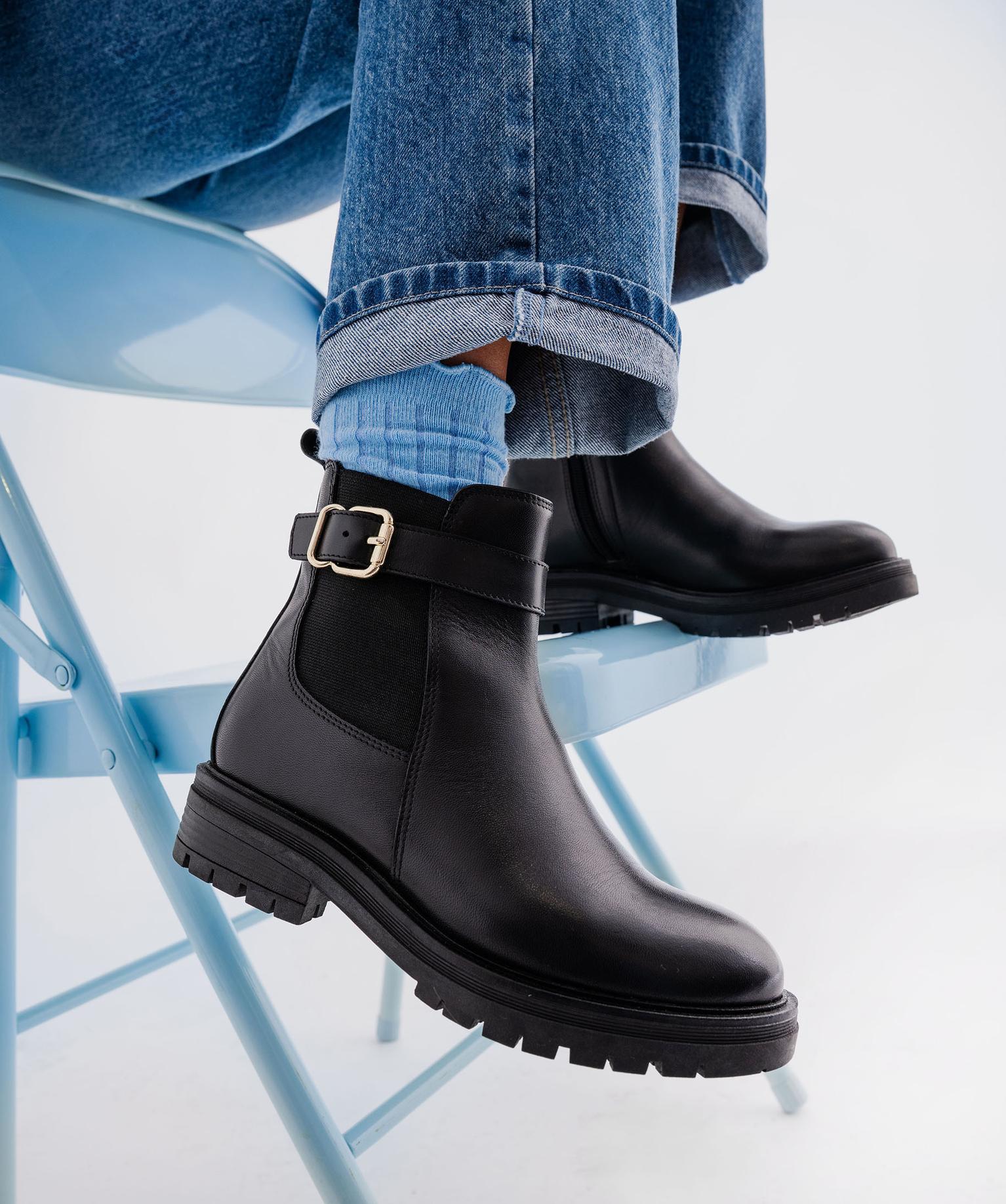 Boots dessus cuir avec semelle crantée femme - Tanéo noir