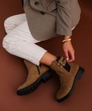 Boots dessus cuir suédé avec semelle crantée femme - Tanéo gris
