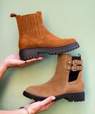 Ces boots Tanéo arborent un look casual plein de caractère. Leur dessus en cuir suédé est rehaussé d’un élastique latéral et arrière inspiré des Chelsea et de 2 brides à boucles dorées. Ces boots femme sont montées sur une épaisse semelle crantée débordante. Confortables et faciles à enfiler grâce à un zip intérieur, ces bottines en cuir se portent aussi bien avec un jean slim qu’avec une robe fluide. Semelle 2 cm.