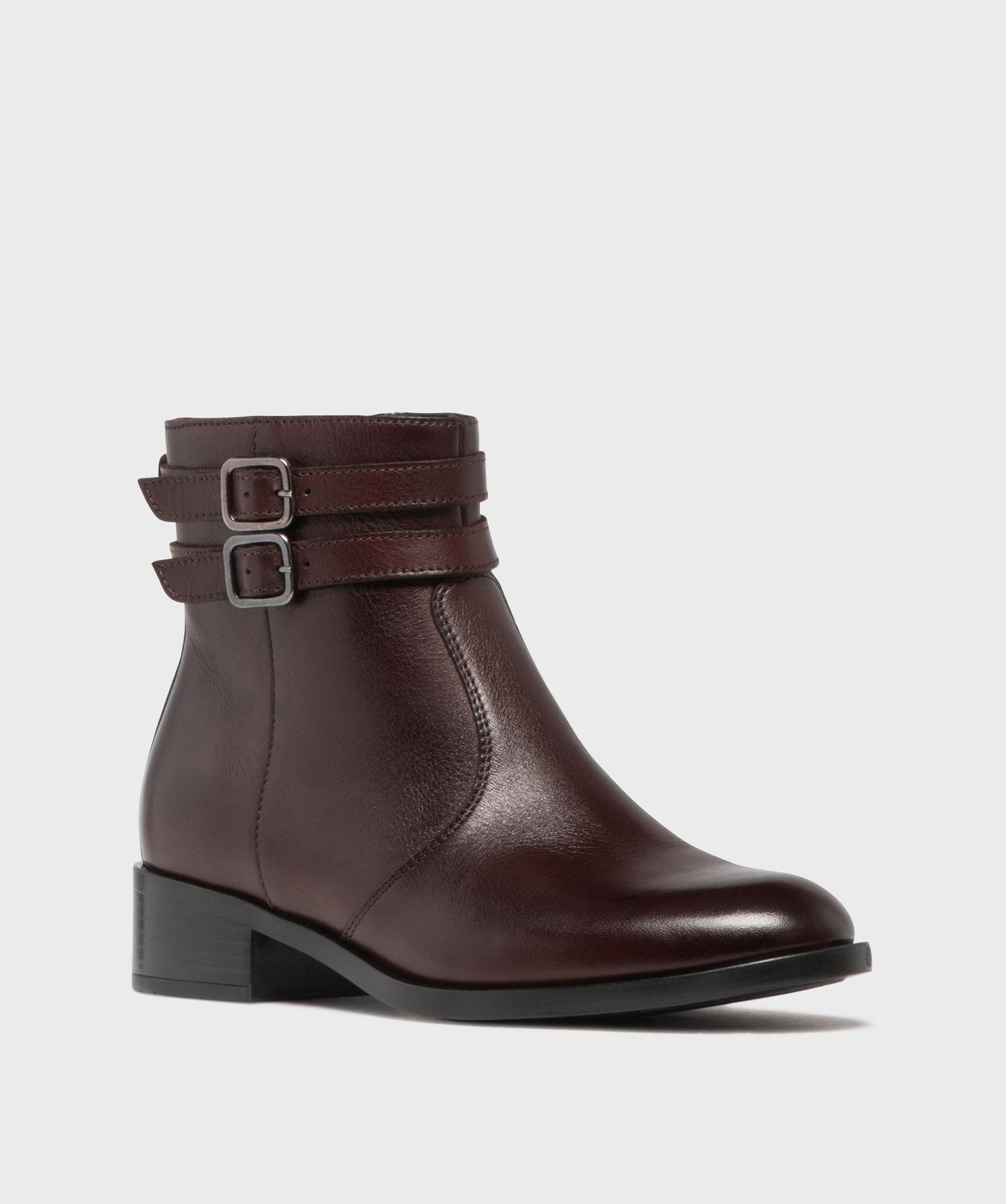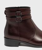Boots en cuir à talon plat et zip femme - Tanéo rouge fonce