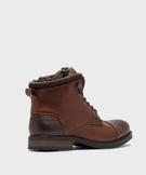 Boots en cuir fourrées à lacets et zip homme - Tanéo marron fonce