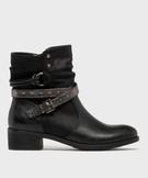 Boots femme à petit talon avec col effet plissé et brides fantaisie noir