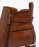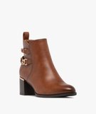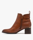 Boots femme à talon carré avec liseré doré et brides fantaisie marron