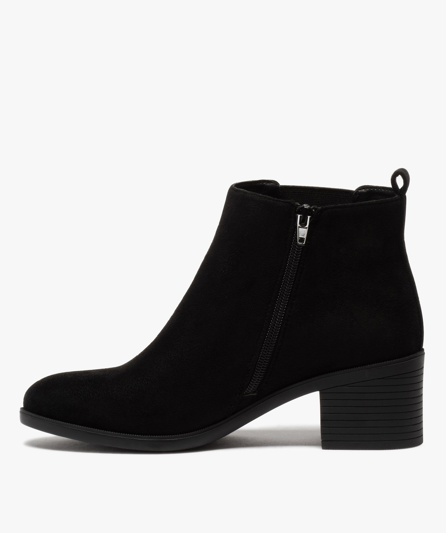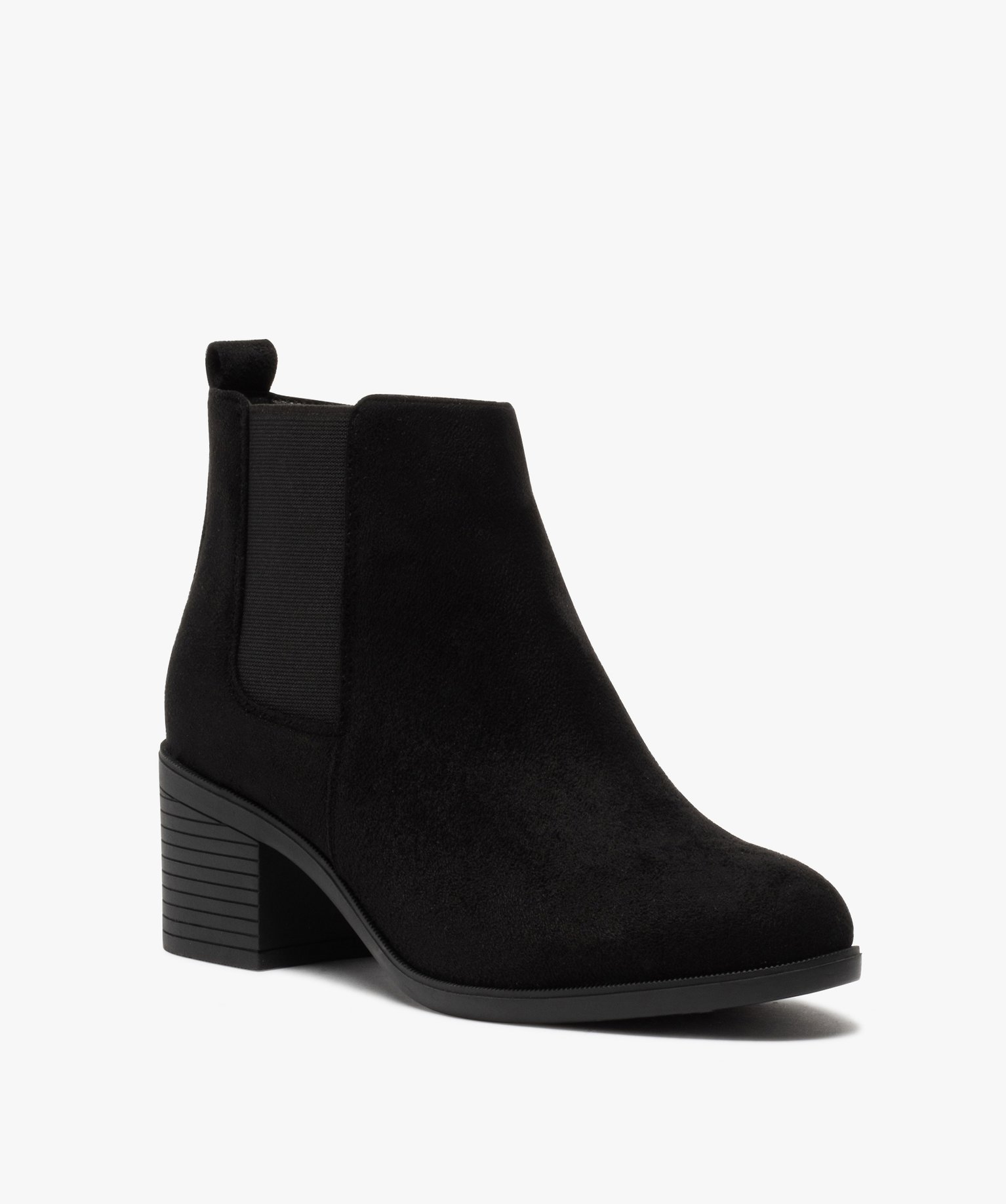 Un classique : le boots chelsea uni à talon carré. Ce modèle de boots pour femme présente une confection très sobre avec sa tige en suédine unie. On retrouve l’empiècement élastiqué sur le côté externe du pied et, sur l’autre côté, un zip pour faciliter l’insertion du pied. Ces bottines sont montées sur un large talon carré de 5,5 cm : une hauteur facile à porter au quotidien qui donnera une jolie allure féminine à votre silhouette. A porter avec un pantalon, un jean, un short ou une jupe : ce type de boots va avec tout ! Fermeture zippée sur le côté interne du pied.