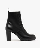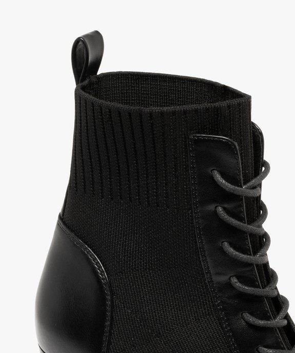 Modernes, ces boots pour femme en cuir imitation adoptent une tige montante et un col élastique. Un effet chaussette, s'adaptant aux différentes morphologies, qui leur donne une allure tendance. Vous pouvez porter ces bottines à lacets avec jupes-crayon, robes sur collants ou pantalons droits et chemisiers.
