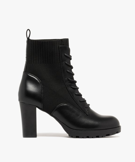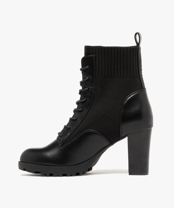 Boots femme à talon col strech avec plateforme crantée noir