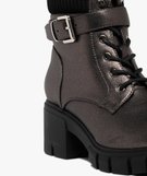 Boots femme à talon cranté et col chaussette effet métallisé scintillant argente