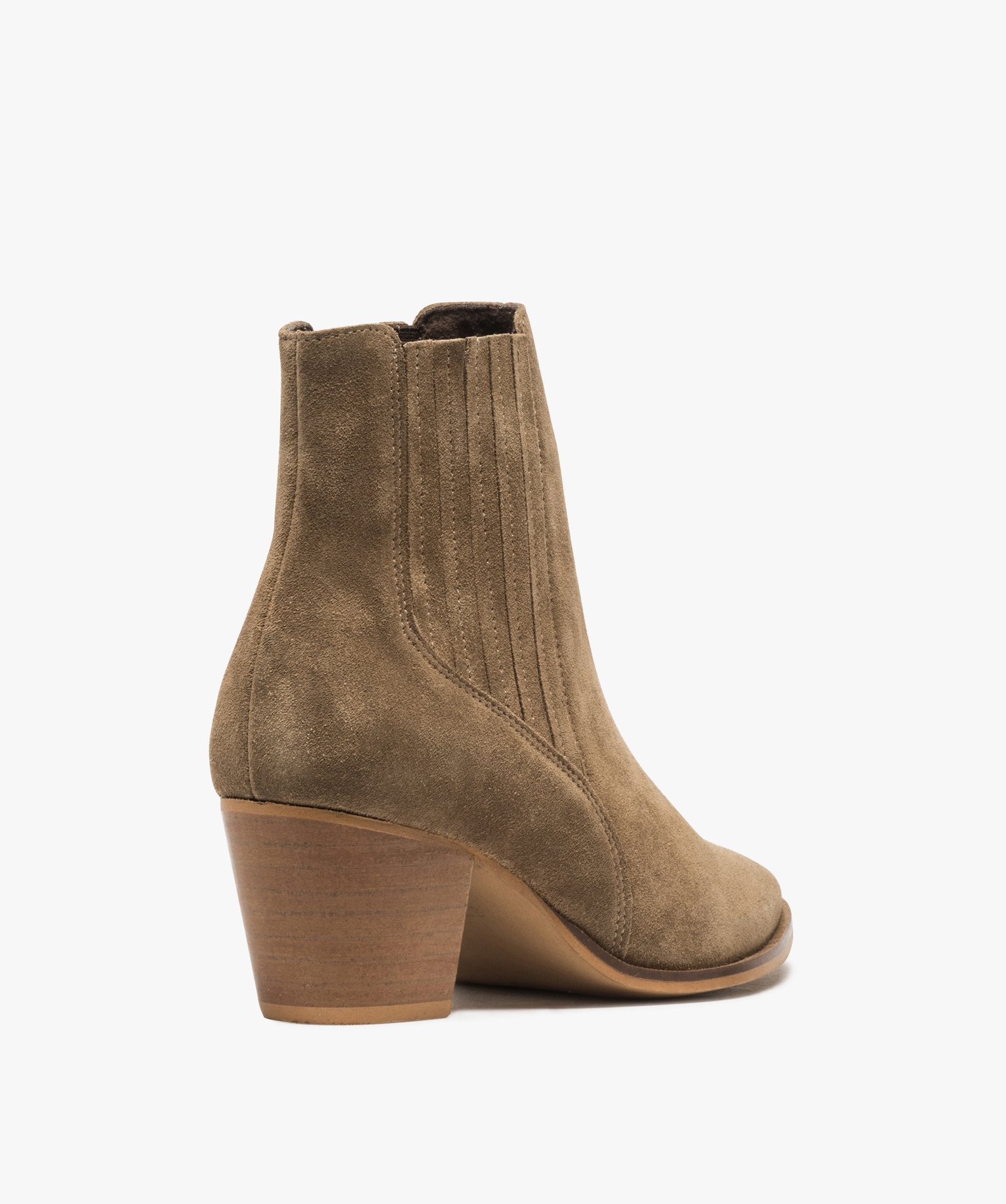 Les boots inspirées du style santiag : un intemporel qui trouve toujours sa place avec un jean et une veste en cuir pour une allure féminine et décontractée. Ces boots pour femme se distinguent par leur tige en cuir retourné uni, à bout pointu, montée sur un haut talon rainuré légèrement biseauté. On les chausse facilement grâce aux larges élastiques sur les côtés, recouverts de la même matière que le reste de la bottine. Doublure chaude et semelle intérieure cuir pour un confort idéal même lorsqu’il fait froid.