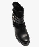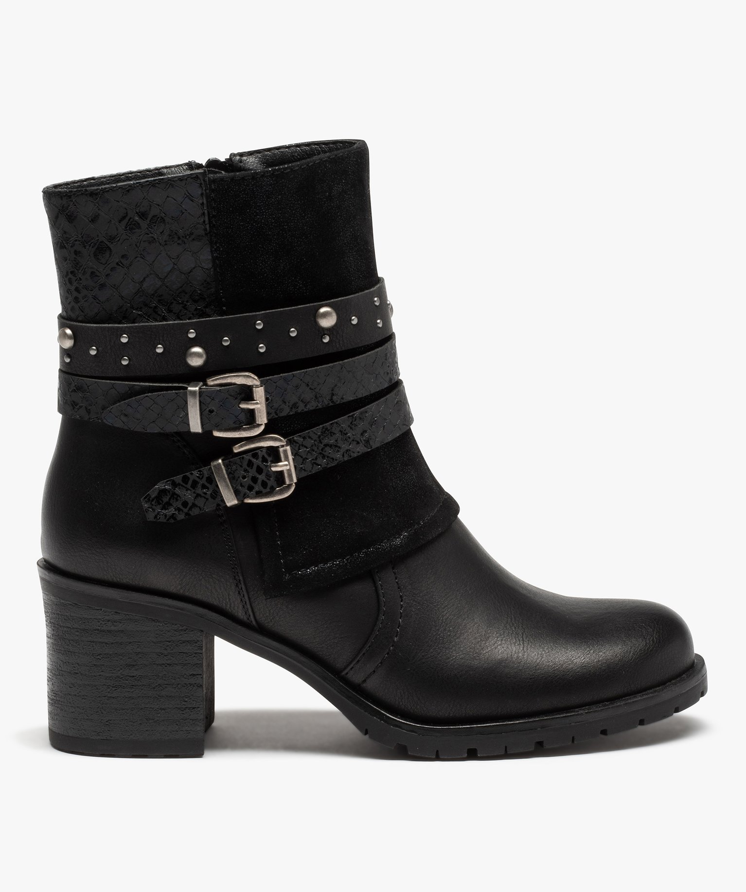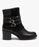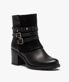 Boots femme à talon large et brides décoratives noir