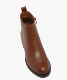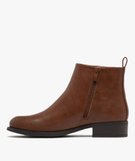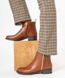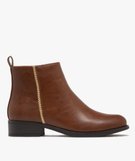 Boots femme à talon plat et à zip avec liseré tressé doré marron clair