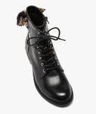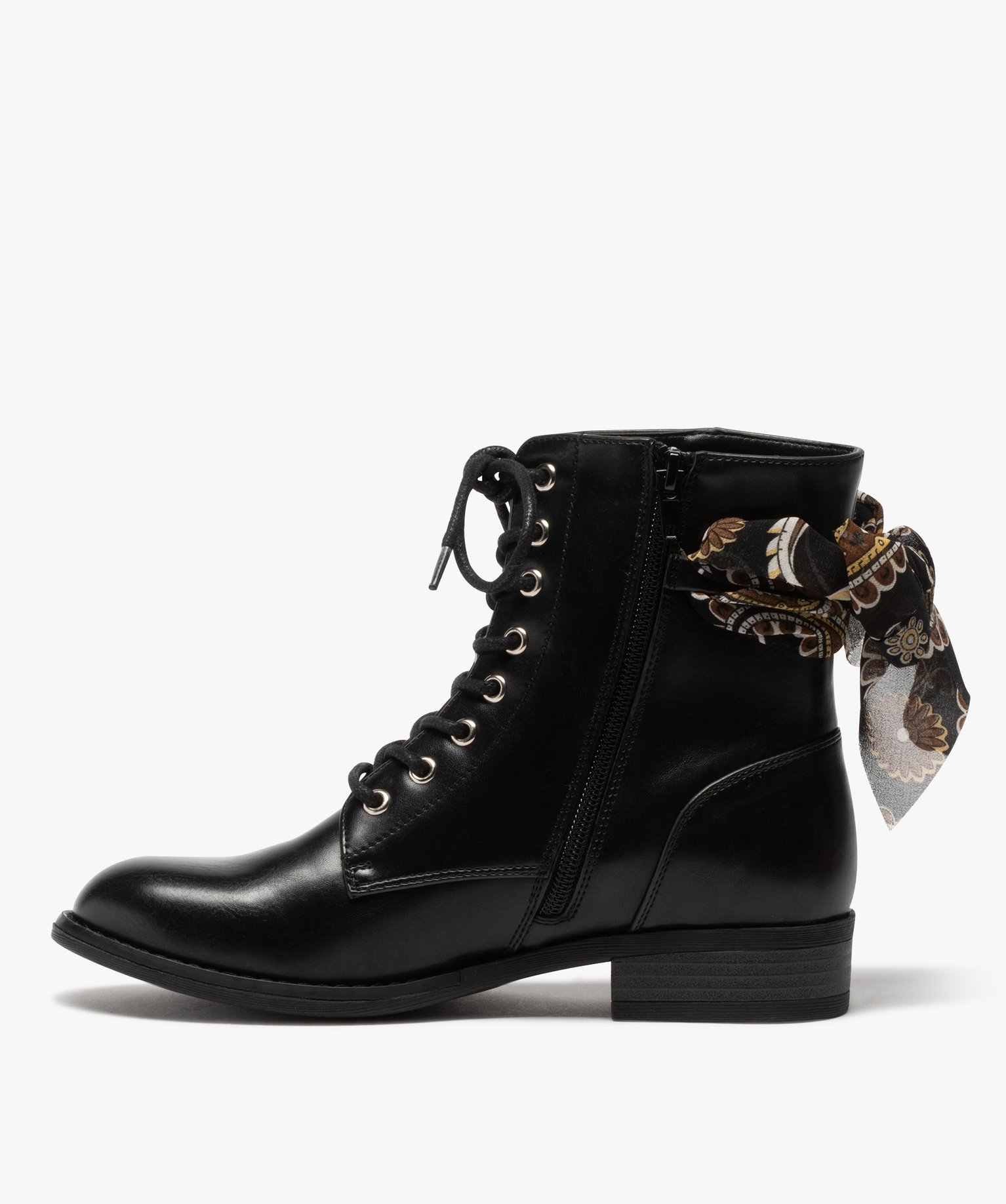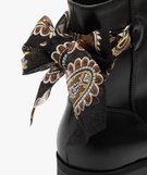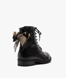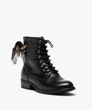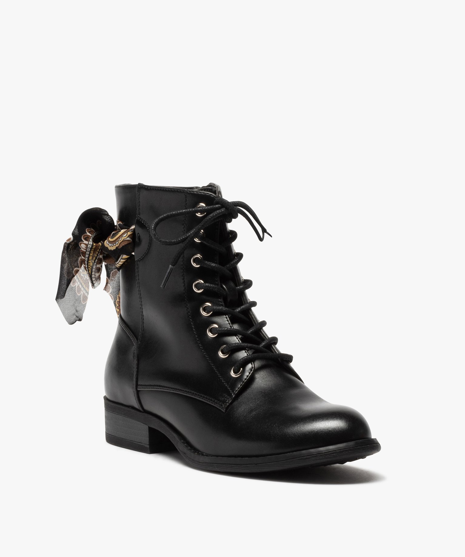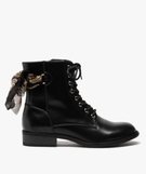 Boots femme à talon plat unis avec ruban fantaisie noir
