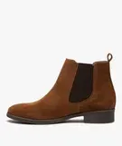 Boots femme à talon plat unis en cuir style Chelsea marron