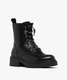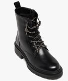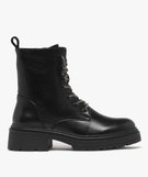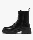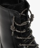 Boots femme à zip et lacets en strass avec semelle épaisse crantée noir