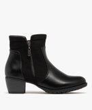 Boots femme confort à talon cubain détail en suédine et zip fantaisie noir