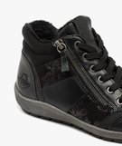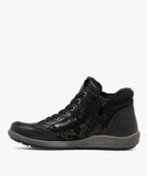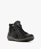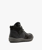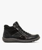 Ces boots confort sont joliment contrastées sur les côtés, par un imprimé brillant. Montées sur une semelle crantée et épaisse, chaudement fourrées à l'intérieur et avec une semelle intérieure moussée à mémoire de forme Softrelax, ces chaussures confort ont tout pour combler vos pieds pendant la saison automne-hiver. Vous pouvez les porter avec touts vos tenues préférées : pantalons droits, jupes longues ou courtes, robes sur collants... Fermeture à lacets plats ton sur ton, 6 oeillets métallisés.
