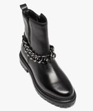 Boots femme crantées à chaîne dessus cuir uni - Tanéo noir
