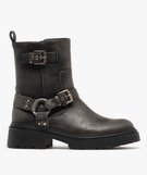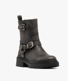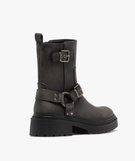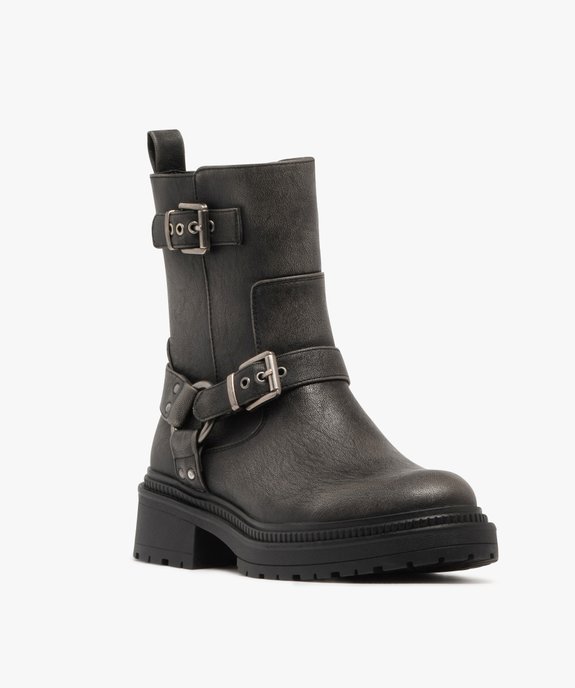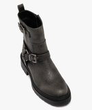 Boots femme crantées à zip avec brides à boucle fantaisie gris
