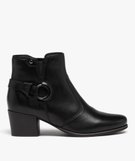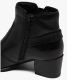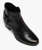 Boots femme dessus en cuir uni à talon carré avec zip noir