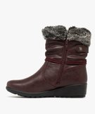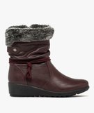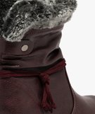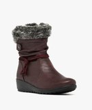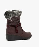 Boots femme fourrées confort à talon compensé et col duveteux rouge fonce