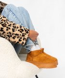 Boots femme fourrées en suédine avec semelle plateforme marron clair