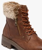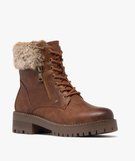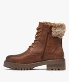 Boots femme fourrées et crantées avec col duveteux à zip et à lacets marron clair