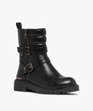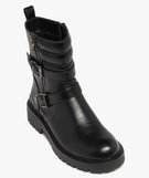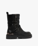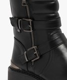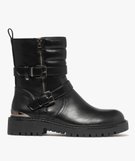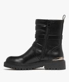 Boots femme mid-cut à col matelassé avec zip et brides fantaisie[MISSING] noir