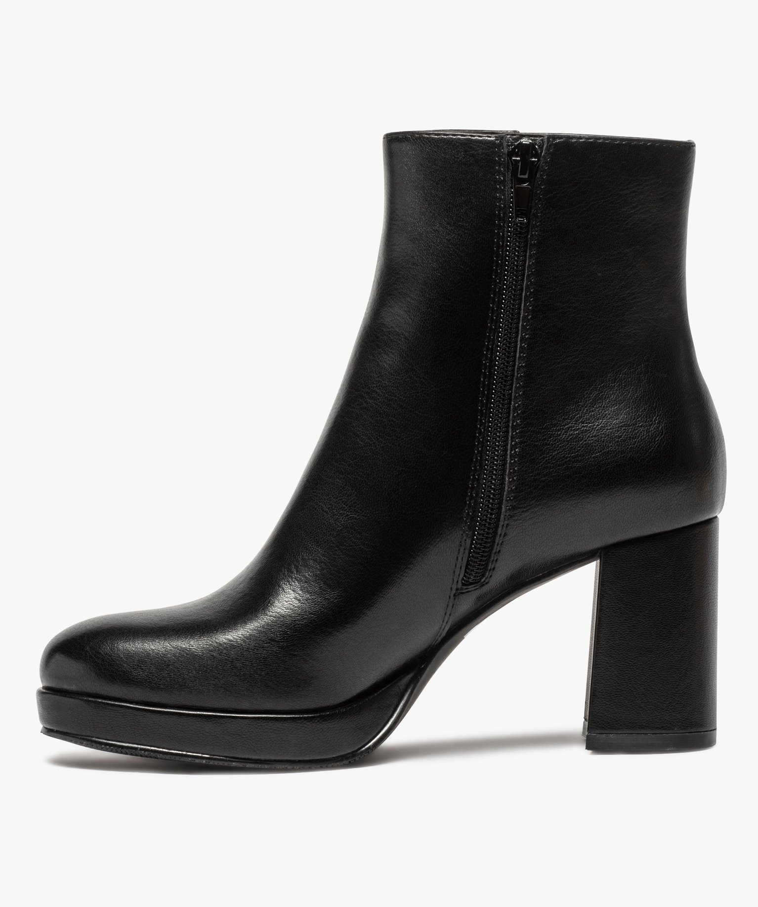 Un haut talon carré recouvert et une semelle plateforme avec patin de 1,5 cm lui aussi recouvert : ces boots femme affichent une belle allure glamour ! La tige au design très sobre est confectionnée en matière lisse finement grainée. Une bottine à adopter pour compléter toutes les tenues chics avec un petite touche rock et beaucoup de féminité. Fermeture zippée sur le côté interne du pied.