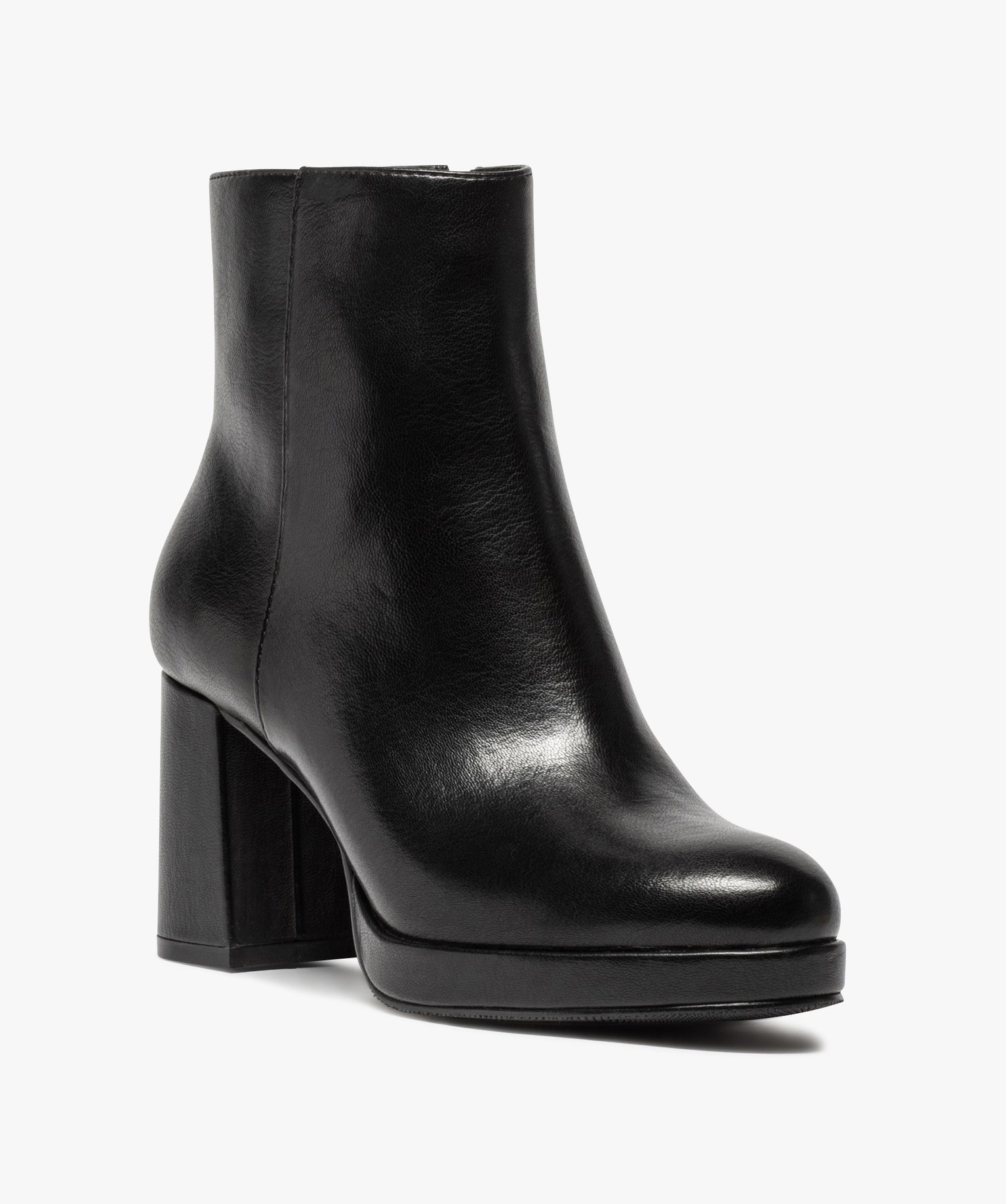 Boots femme unies à talon carré et semelle plateforme noir