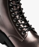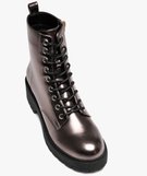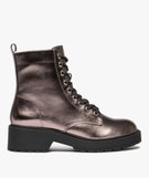 Boots femme vernies avec semelle crantée épaisse à zip et à lacets metalise