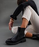 Lorsque le moderne sublime le classique, ces bottines Chelsea vernies et à semelle épaisse crantée revisitent le genre. Des boots pour femme casual que vous pouvez porter avec toutes vos pièces favorites : le jean 3/4, la petite robe noire ou la jupe-crayon. Pour votre confort, la semelle intérieure est délicatement moussée. Modèle à enfiler.