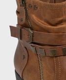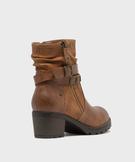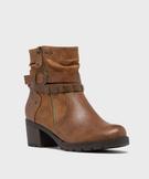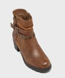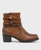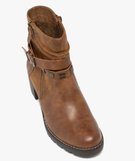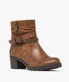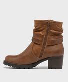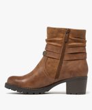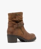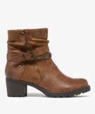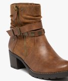 Boots femme zippées à talon carré et semelle crantée col plissé marron