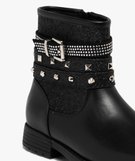 Boots fille à zip avec col pailleté et à brides fantaisie[MISSING] noir