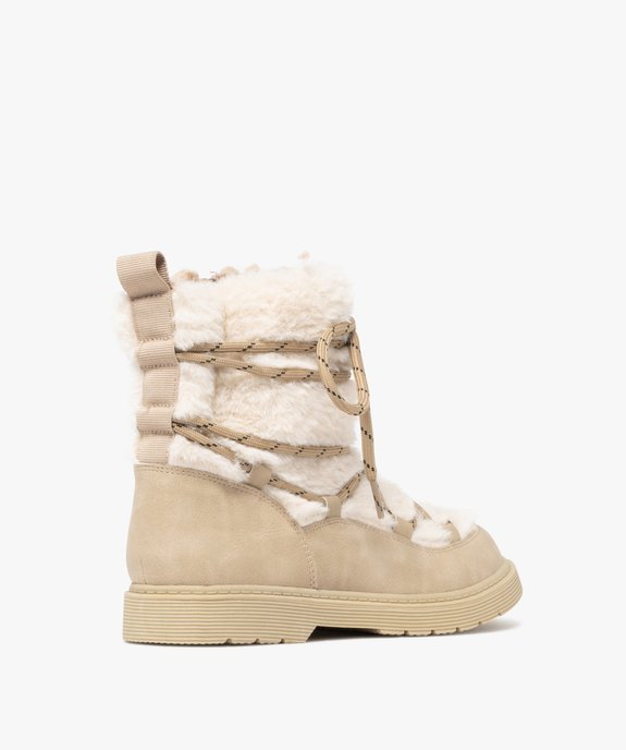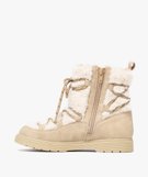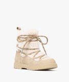Boots fille fourrées au dessus duveteux à zip et lacets à nouer beige