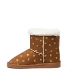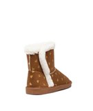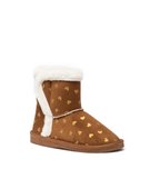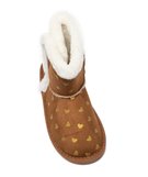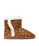 Boots fille fourrées avec scratch à motif cœurs marron clair