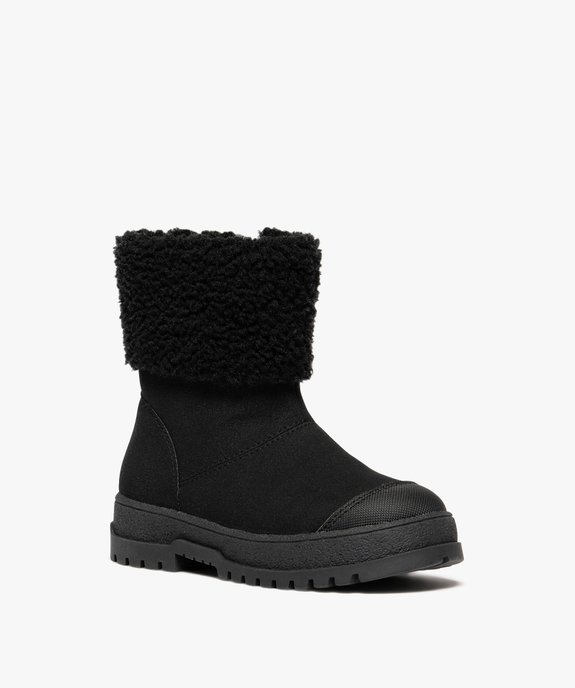 Boots fille fourrées dessus en suédine avec col sherpa et à zip noir