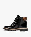 Boots fille fourrées et vernies avec col suédé léopard et à semelle crantée noir