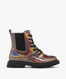 Avec un jeu de lumière irisée sublime, ces boots ultra-tendances sont parfaites pour la saison. Zippées et avec un col équipé d'un élastique d'aisance, ces bottines pour fille sont faciles à chausser. On adore la semelle crantée et granuleuse, idéale pour habiller un jean slim ou une jupe sur collants. Semelle intérieure moussée.